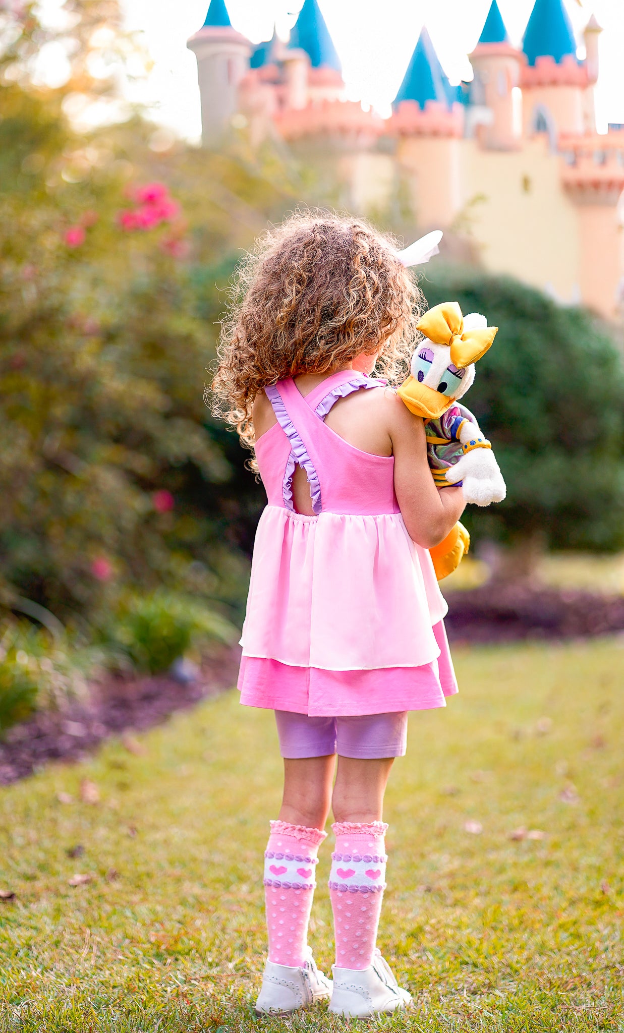 This adorable short set features the cutest iconic bestie duo in our beloved Princess Style silhouette. They’re perfect for little dreamers enjoying big park adventures or simply to make life's little moments extra girly and fun!