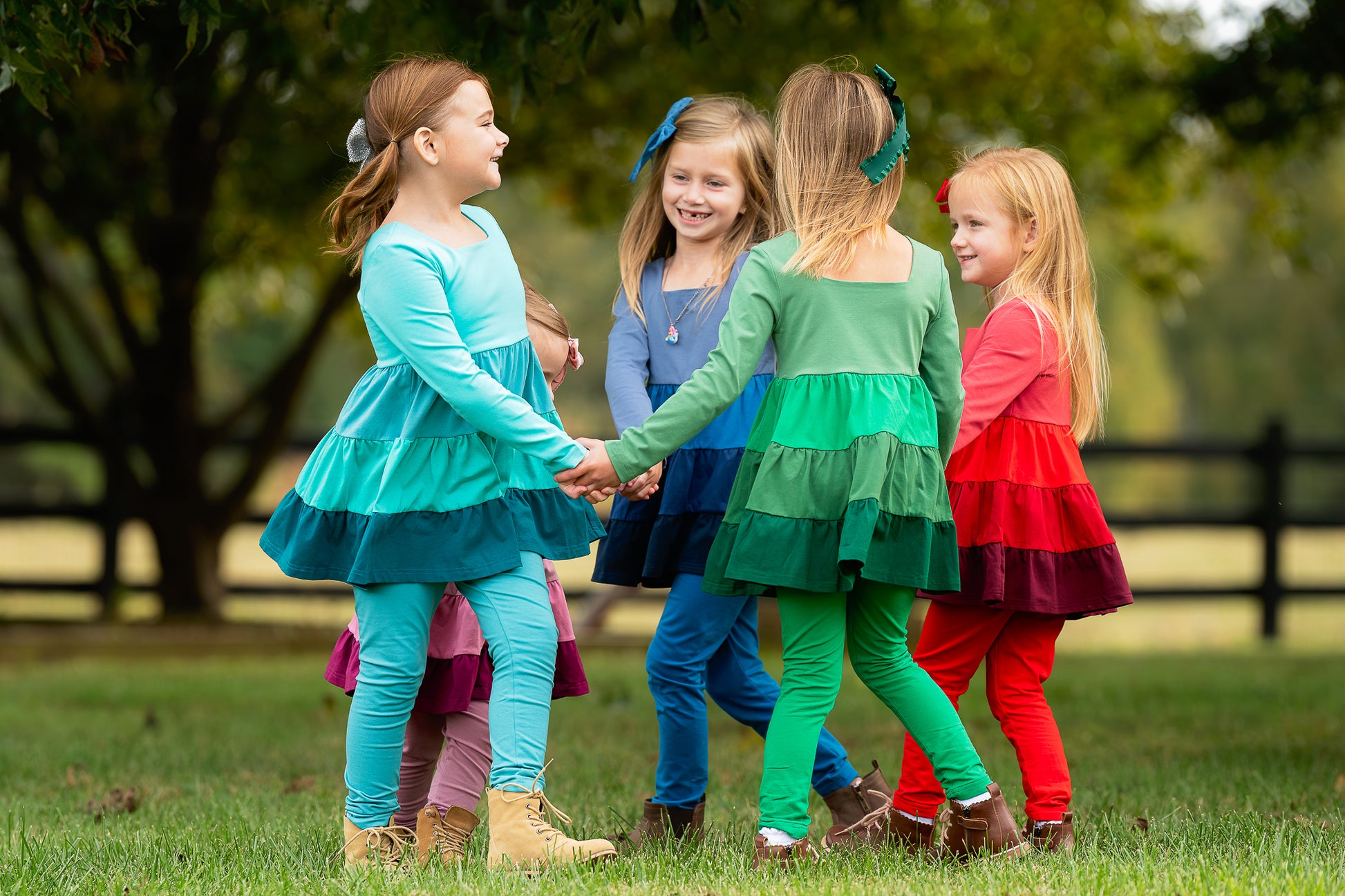 Where comfort meets vibrant charm! Each set features a beautiful cascading ombré design in five stunning colorways, perfect for adding a pop of personality to winter wardrobes. Designed with soft, comfortable fabric, a square neckline, and long sleeves for warmth, these outfits are made for twirling through chilly days in style!